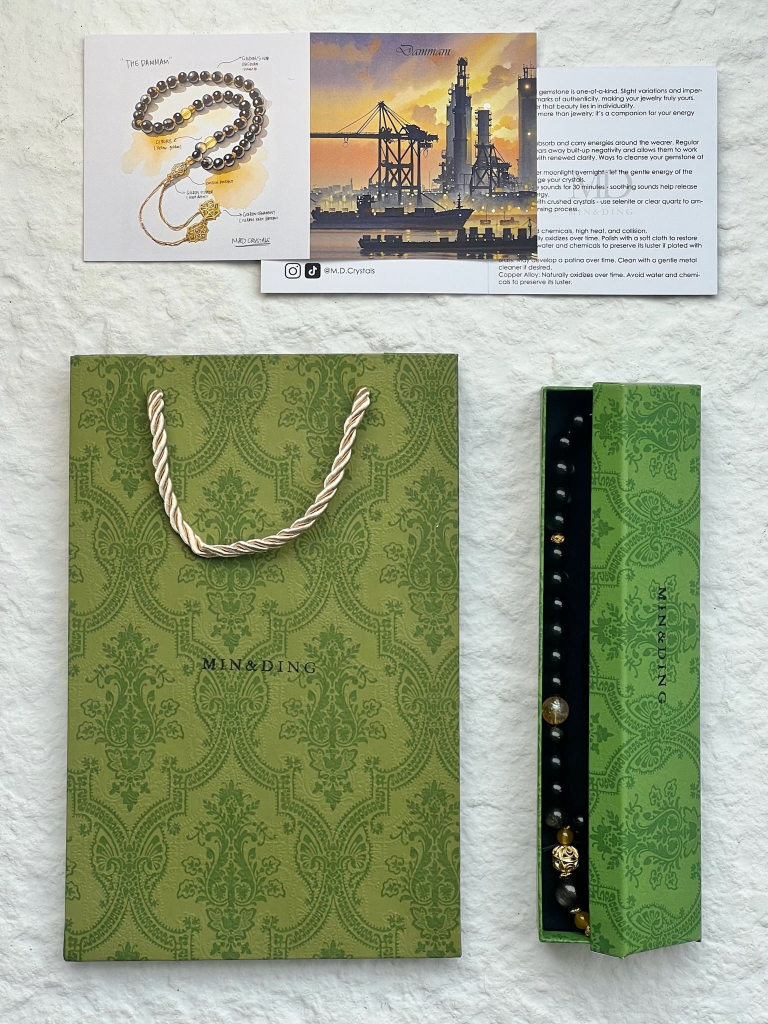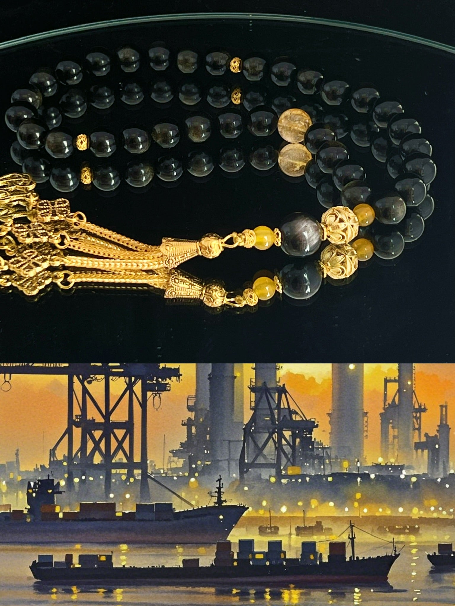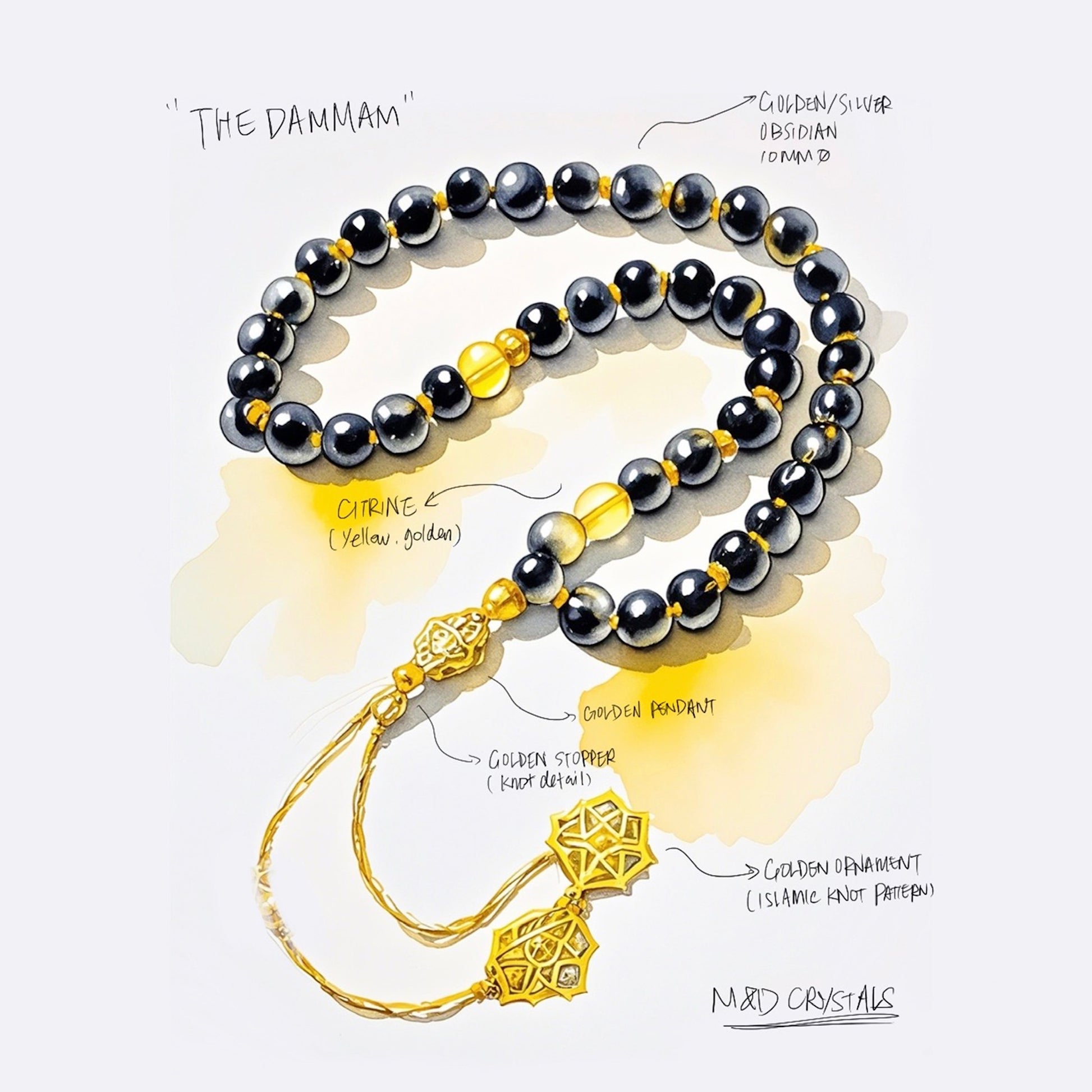 كمدينة ساحلية حيوية، تُجسّد الدمام الصمود والقوة. حبات حجر السج الذهبي، المعروفة بخصائصها الوقائية، تعكس صمود المدينة ودورها المحوري في اقتصاد البلاد. تُجسّد هذه المسبحة روح الدمام الثابتة وعزيمتها الراسخة.
